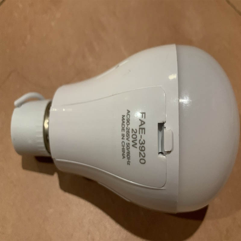 Корпус світлодіодної аварійної лампи виготовлений із міцного високоякісного пластику. Лампа самостійно визначає, чи є електрика. Якщо перебоїв електрики немає, лампа працює в штатному режимі, як будь-яка стандартна лампочка, при цьому йде зарядка вбудованого акумулятора. Якщо напруга в мережі зникає (вимикають світло), то лампа автоматично ввімкнеться, тобто працюватиме від вбудованого акумулятора.